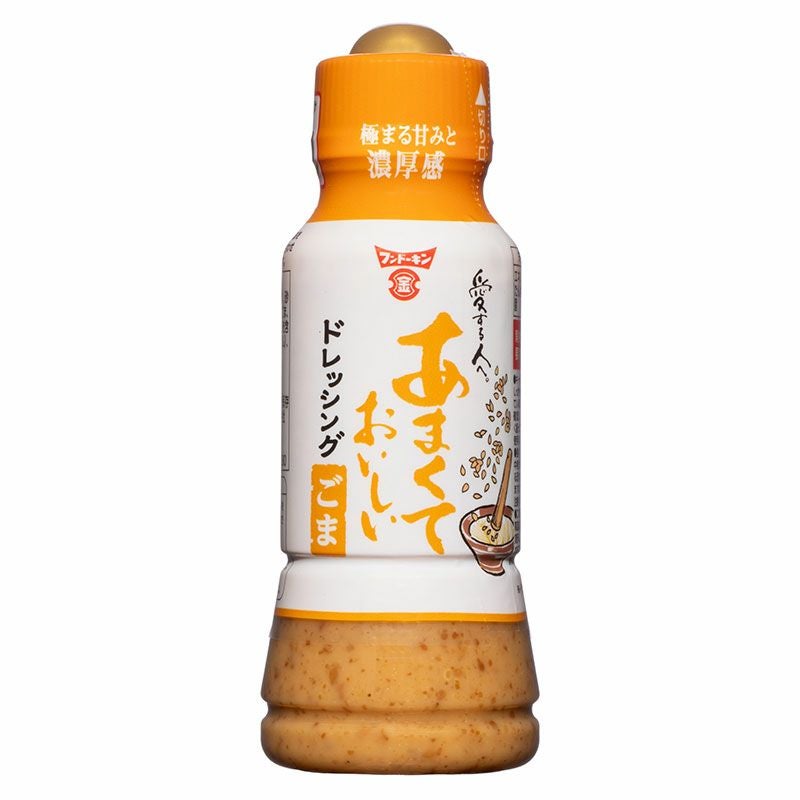 | 商品説明 | フンドーキンの人気商品“あまくておいしい”シリーズのドレッシング。オリジナル製法(香りごま製法)でごまの風味をしっかり引き出し、自社醸造のしょうゆと合わせました。極まる甘みと濃厚感が特長のドレッシングです。 |
