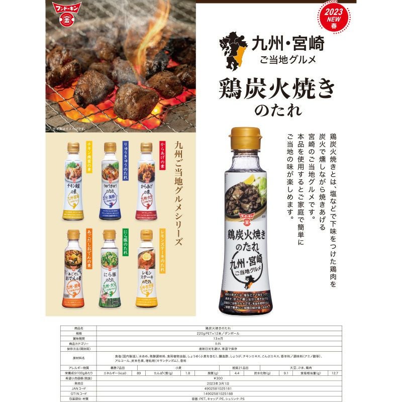九州で人気のご当地グルメが手軽に作れる「九州ご当地グルメシリーズ」です。にんにくとしょうががきいた醤油味の“からあげ”、新鮮な刺身を甘口醤油だれに漬込んだ“りゅうきゅう”、醤油ベースのたれで炒めた中華風の“にら豚”、甘辛く味付けした鶏肉とごぼうを混ぜごはんにした“鶏めし”、甘酸っぱいレモン風味の醤油ダレがたまらない“レモンステーキ”、さっぱりとした甘酢と鶏肉が相性抜群の“チキン南蛮”。以上のご当地グルメが手軽に、美味しく簡単に作れます。ご家族みんなで“九州の味”をご賞味ください。