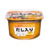 原材料 | 米みそ(国内製造)(大豆、米、食塩、水あめ)、麦みそ(大麦、大豆、食塩、水あめ、たんぱく加水分解物)、食塩、たんぱく加水分解物、だし(かつお、うるめ、さば)、かつおエキス(小麦を含む)、 煮干いわし粉末、昆布エキス/酒精、調味料(アミノ酸等)、漂白剤(次亜硫酸ナトリウム)、甘味料(甘草)、着色料(ビタミンB₂) |