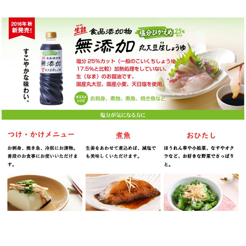 他の画像を見る 終売しました 塩分が気になる方の生醤油 生詰食品添加物無添加丸大豆生しょうゆ塩分控えめ 720mlペットボトル 販売価格 ¥ 518 税込 販売を終了しました。 詳細を見る お気に入りに登録する