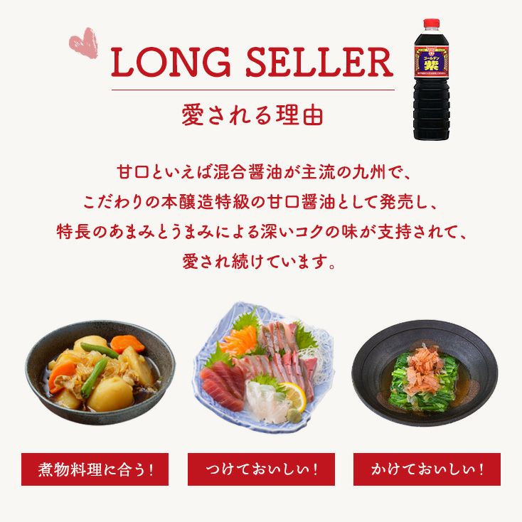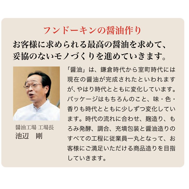 他の画像を見る まろやかな風味を持つ本醸造丸大豆しょうゆに、本かつおのうまみを加えただししょうゆです 。 丸大豆かつおしょうゆ 200ml密封ボトル 販売価格 ¥ 362 税込 カートに入れる お気に入りに登録する