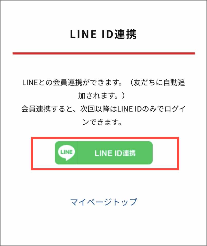マイページにて「LINE ID連携する」ボタンをタップしてください。